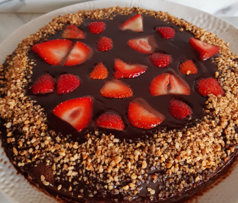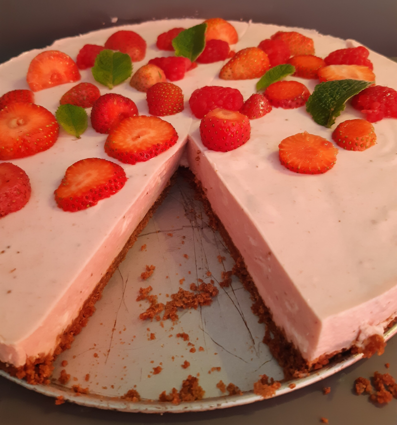 Lange vingers chocoladetaart aardbeien-kwarktaart