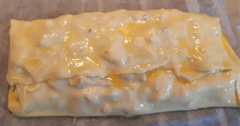 - Zet de strudel 25 minuten in de oven. Ik heb na 15 minuten aluminiumfolie over de bovenkant gelegd, zodat deze niet te donker zou worden