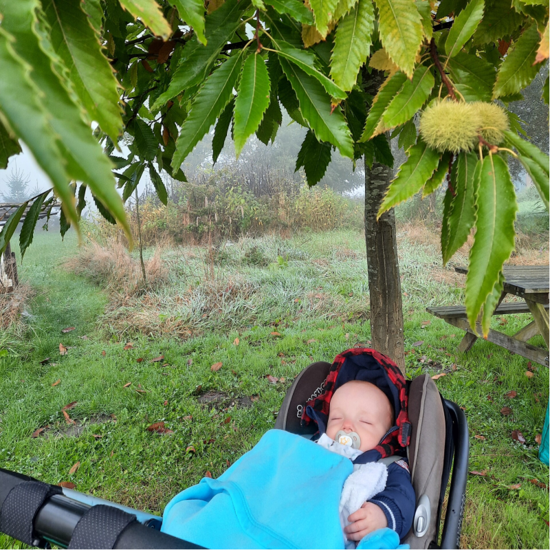 De herfst is nu echt begonnen. En ondanks dat ik geen fan ben van regen vind ik de herfst een heerlijk seizoen. De bladeren aan de bomen die veranderen van groen naar bruin en oranje. De paddenstoelen die voorzichtig opkomen. Dat het weer eerder donker wordt en we dan warm binnen zitten met kaarsjes aan. En ook op culinair gebied is de herfst een heerlijk seizoen. Met gerechten die lang op staan, daar waar je de geuren door het hele huis ruikt. De appels die zo lekker smaken, de robuuste groente die ik tegen kom op de zelfoogsttuin. Daar waar ik in de regen en kou sta te oogsten en toch nog aan het genieten ben. Julian gaat niet zo vaak meer mee, omdat ik meestal oogst als hij op school zit. Ivano daarentegen gaat wel mee en kijkt dan zijn ogen uit naar de bomen of naar de verschillende weersomstandigheden. Of hij ligt heerlijk te slapen onder de kastanjeboom.