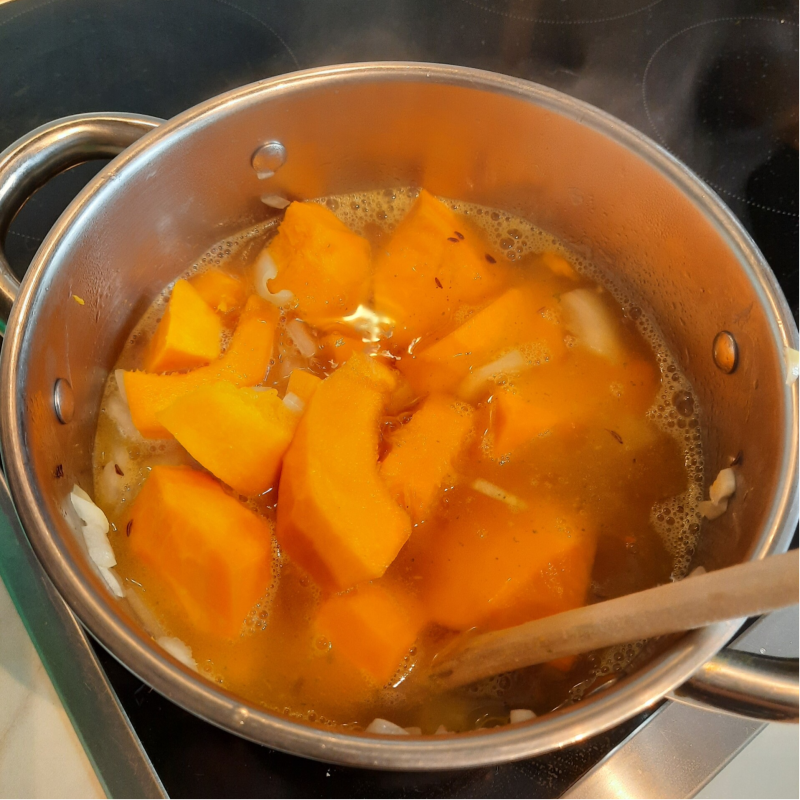 - Blijf roeren tot de soep kookt. En laat de soep dan zo'n 20 minuten koken tot de pompoen goed zacht is