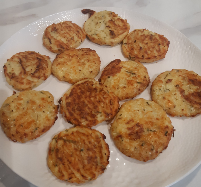 - Vorm met natte handen kleine koekjes van bloemkool. Leg ze op een met bakpapier beklede bakplaat. Het voelt een beetje kruimelig aan, maar dit komt goed, geen zorgen ;-)