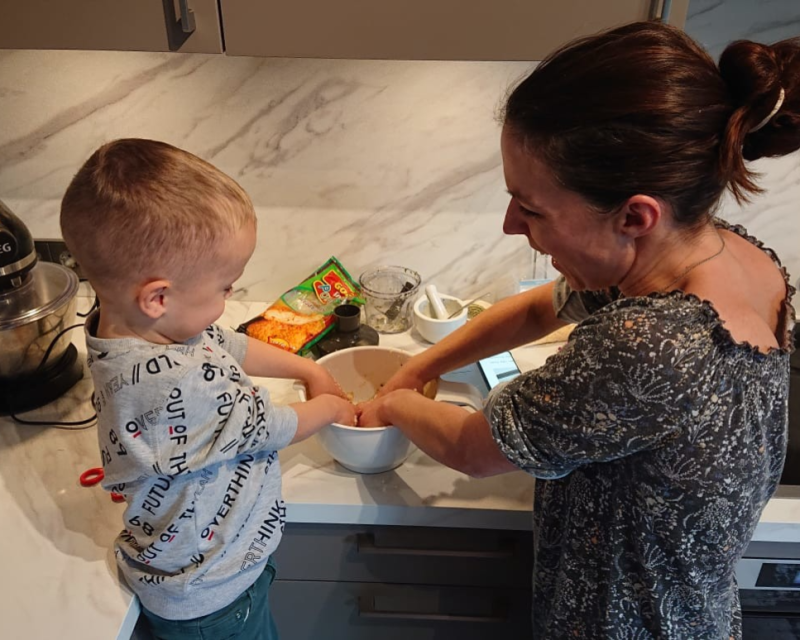 Dit is een heel fijn gerecht om samen met Julian te maken; hij vindt het heel leuk om de bloemkool te wassen. Met water spelen is altijd goed ;-) En ook de bloemkool fijn maken met de hakmolen vindt hij erg leuk. Het 'balletjes' vormen vond Julian iets minder leuk...iehh dan krijg ik vieze handen. Tsja lieverd, dat hoort erbij in de keuken. Toen hij zag dat mijn handen ook vies werden, vond hij het niet zo erg meer gelukkig.
