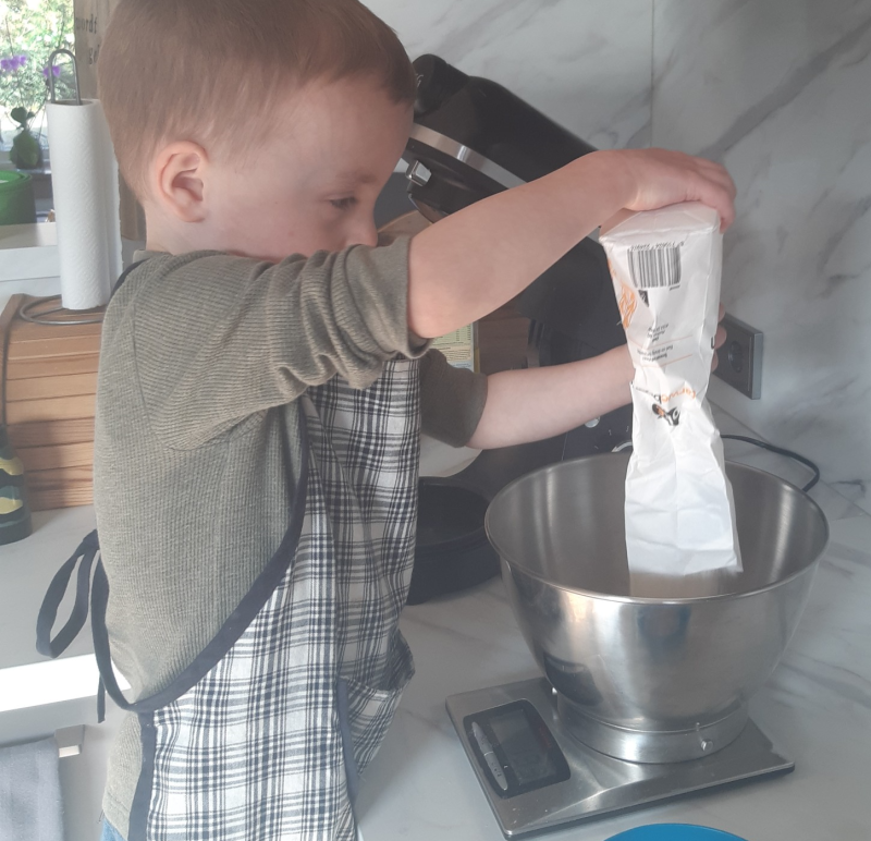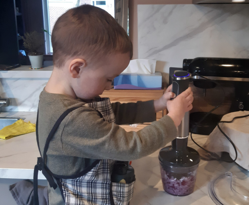 Ik wordt steeds blijer met mijn inductiekookplaat, ik merk aan Julian dat hij nu veel beter kan helpen dan bij de vlammen van het gasfornuis.