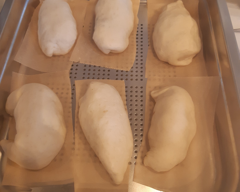 - Vouw de bolletjes goed dicht en leg ze met de naad naar beneden op het bakpapier