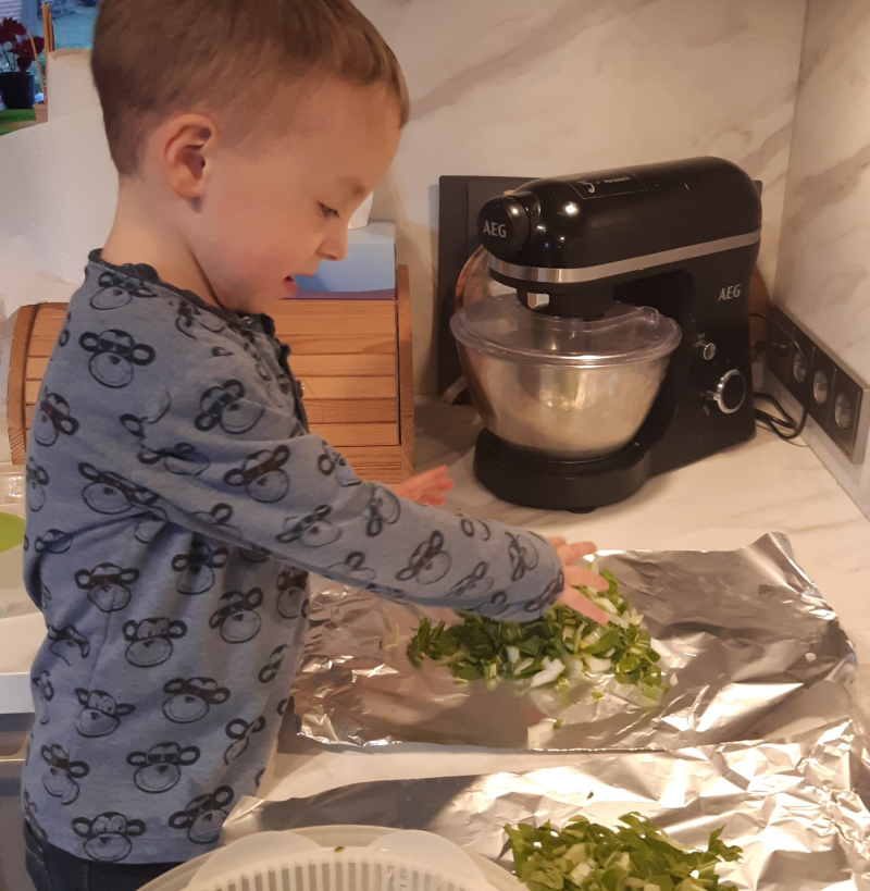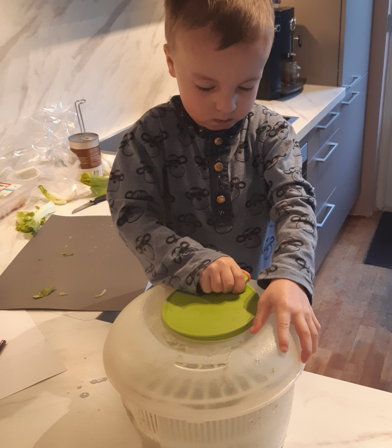 Julian maakte kennis met de groente-centrifuge, dat vond hij erg leuk om te doen.