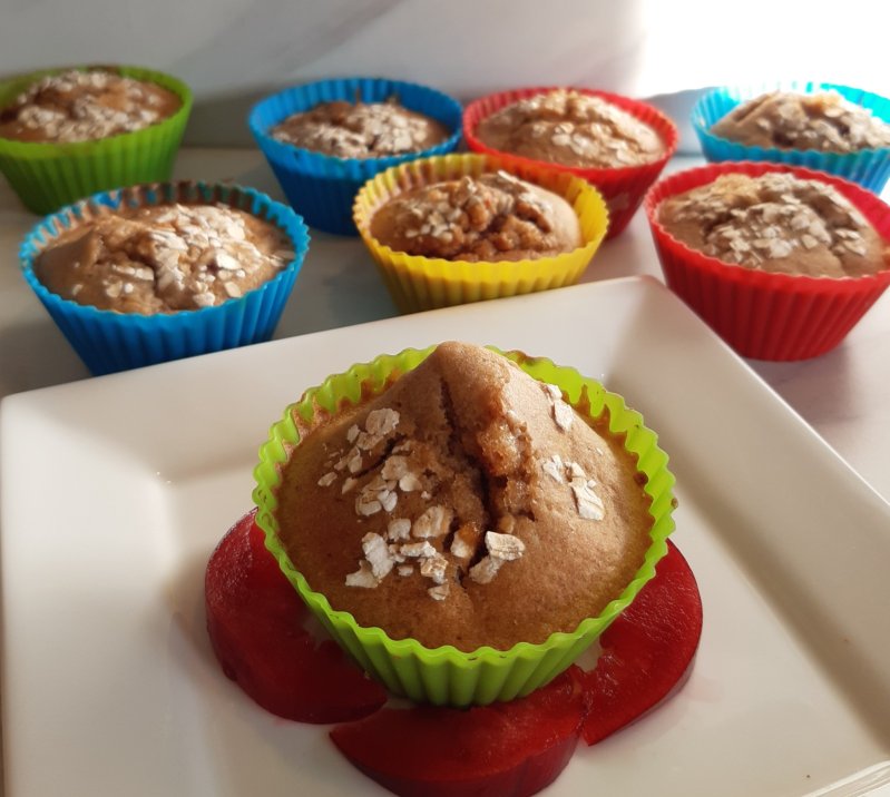 In het boodschappen magazine van de Plus kwam ik deze pruimen-muffins tegen. En aangezien ik nog pruimen in de koelkast had liggen die al wel heel goed rijp waren, werd dit de keuze.