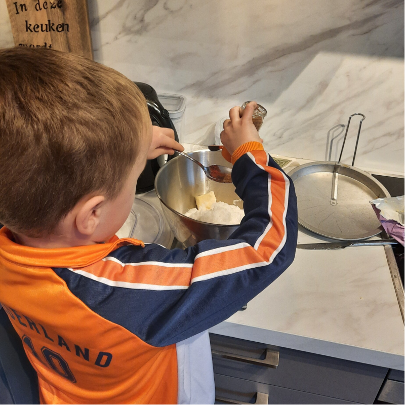 Zoals een 'standaard' boterkoek betreft is het een machtige koek, die zin moest ik Julian nog wel even uitleggen. Maar toen ik hem maar een klein stukje gaf en hij daarna vol zat, begreep hij precies wat ik bedoelde.