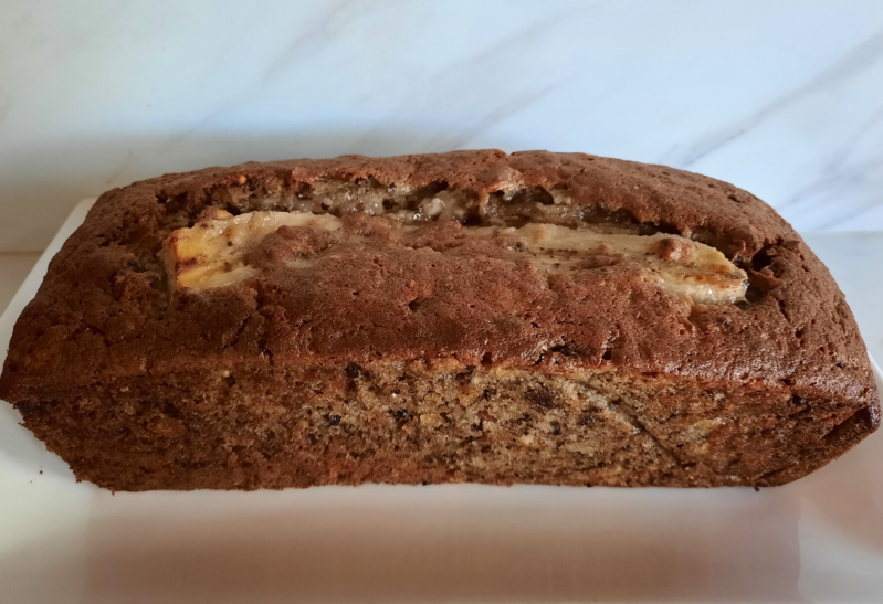 De smaak van de melk proefde hij gelukkig niet in de bananencake die we deze week samen maakten. We hadden veel rijpe bananen en ik wilde ze al bijna weggooien, totdat ik een recept van Miljuschka tegen kwam. Er stond bij, de lekkerste bananencake die je ooit geproefd heb.