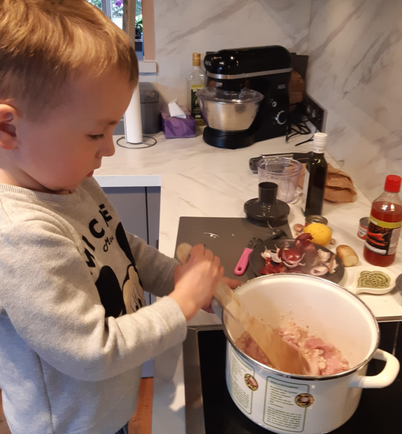 Aangezien we nog steeds in de corona-crisis zitten, heb ik meer tijd om wat langer in de keuken te staan. Ik snap heel goed dat dit niet voor iedereen geldt. Als je kinderen wat ouder zijn en ze moet helpen bij het huiswerk om vervolgens ook nog je eigen werkzaamheden thuis te doen, kies je liever voor iets gemakkelijks. Ik heb echt respect voor jullie!!! Ik kan mijn werk - pedagogisch medewerkster op een kinderdagverblijf - niet thuis uitoefenen en Julian heeft nog niet echt huiswerk dus hebben wij de mogelijkheid wat langer in de keuken te staan. Daar zoek ik dus nu ook de recepten op uit.