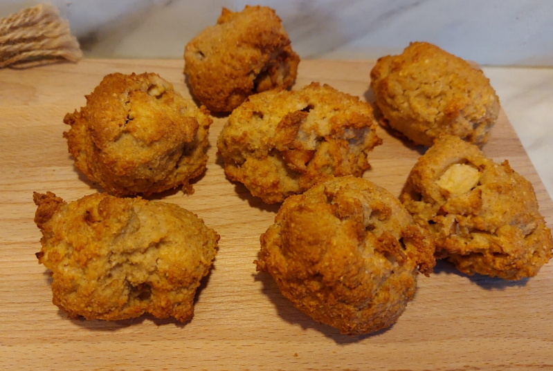 Om de kinderen te stimuleren dat iets lekkers ook heel goed zonder toegevoegde suikers kan zijn, hebben we de kwarkbollen met appel en kaneel gemaakt. Deze kreeg ik per mail van het diabetesfonds die mij tips en recepten heeft toegestuurd.